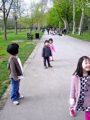 Met up with Syl and her dearie and Val and her very 'yen-dao' boy today. Not only was I very proud of my girls who behaved very well, I was proud of myself too. Why? All because I brought them to London myself and without a stroller. I wouldn't have dreamt about bringing the girls on a day trip to London without one before. But after much thoughts, I'd rather not lug it along and carry it up and down the many stairs at the tube stations, in and out of buses and push it through the crowds on the streets. I had prep-talked Lavigne days before that Danielle and Luke (same age as her) don't sit in one. This morning, she told me she didn't want me to bring the stroller along.